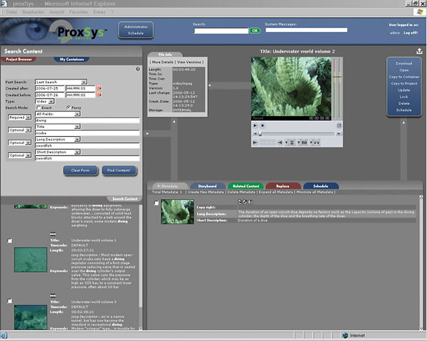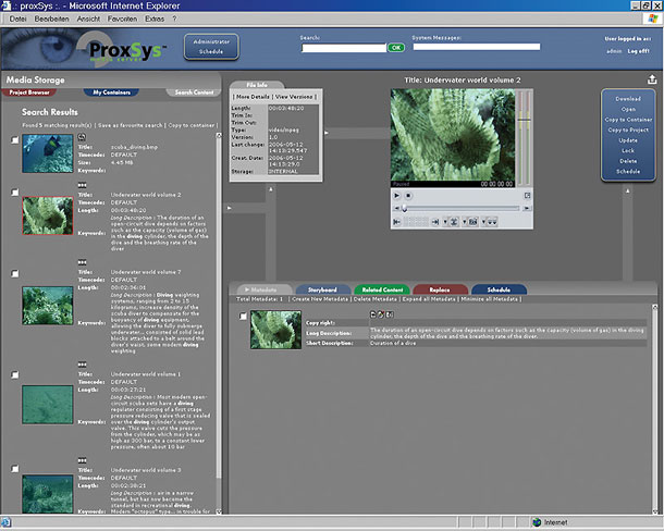 Über das Browser-Interface kann der Zugriff auf die Low-Res-Daten auch ortsunabhängig erfolgen. Für den Anwender stehen vordefinierte oder frei konfigurierbare Metadatenfelder für das Management der Daten zur Verfügung, so Focus. Über eine Importfunktion oder die ProxSys-Ingest-Lösung kommt das Material ins System, wird mit Metadaten verknüpft und in Projekten organisiert. Für die Vorschau von Videos (Preview) steht ein Player-Plug-In zur Verfügung. Neben der Preview-Funktion sollen im Vorschau-Modus auch Teile eines Videos herausgeschnitten und weiter verwendet werden können (Clip Extract / Trim). Eine Suchmaschine erlaubt das Suchen und Finden von Clips. Das gefundene Material lässt sich in Containern zusammenfassen und über Exportmodule oder die ProxSys-Playout-Lösung zur weiteren Verwendung bereitstellen. Die Storage-Lösungen für ProxSys-MAM-Systeme unterscheiden sich in Performance und Kapazität, sie sollen je nach Bedarf des Kunden anpassbar sein.