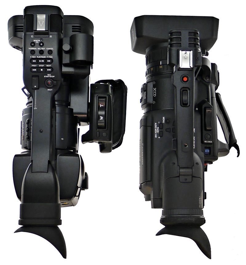 Handheld-Camcorder sind kompakter und verglichen mit Schultercamcordern auch recht leicht. Neuerdings gibt es aber auch unter den Handhelds wieder ziemliche Kaliber: der PDW-EX1 von Sony oder Panasonics AG-HVX200 (Vergleichstest hier) wiegen betriebsbereit jeweils rund 2,8 kg. Das ist für den reinen Handheld-Betrieb zu viel, zittrige Bilder und rasche Ermüdung beim Kameramann sind bei längeren Einsätzen vorprogrammiert.
