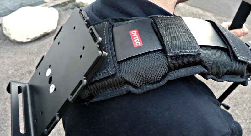 Die Konstruktion des DVRigPro ist vergleichsweise massiv und schwer, vor allem wegen der großen Adapterplatte an der Schulterstütze. Das ist für den Transport ein klarer Nachteil. Das zusätzliche Gewicht führt aber im Betrieb dazu, dass der Schwerpunkt des Gesamtsystems nach hinten verlagert wird, wodurch das DVRigPro auch gut als reine Schulterstütze ohne zusätzliche Hüftstütze eingesetzt werden kann.