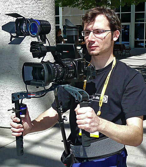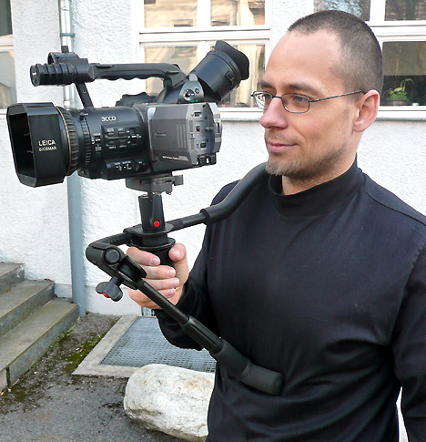 Oft kommen zum Camcorder noch weitere Zubehörteile hinzu: Mikro, Audio-Empfänger, Aufsteckleuchte, Zoomfernbedienung und vielleicht noch ein ordentliches Kompendium, treiben das Gesamtgewicht schnell über das Maß hinaus, das man seinem Handgelenk für längere Dauer zumuten sollte. Die Drehsituation oder die Gestaltung des Films erfordern aber oft hohe Mobilität und Flexibilität beim Drehen, was eigentlich nur mit einem kompakten Camcorder möglich ist und in vielen Fällen den Einsatz eines klassischen Dreibeinstativs ausschließt.