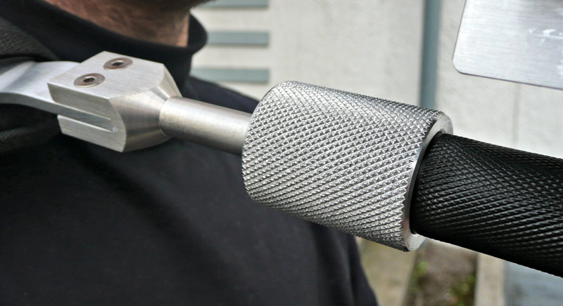 Die Griffe sind mit einer Drehbewegung schnell entriegelt und lassen sich ein Stück weit entlang der Querstange verschieben. Besonders gut für den Haltekomfort ist, dass die Handgriffe bei Bedarf auch sehr weit auseinander gespreizt werden können.