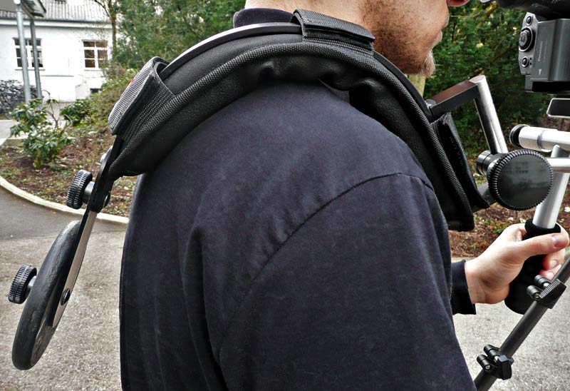 Die Schulterauflage des DVRigPro empfanden die Tester zwar nicht gerade als komfortabel, aber brauchbar. Die schnelle Verstellung mittels einer Schraube und die einstellbare Beweglichkeit fand den Zuspruch der Tester.