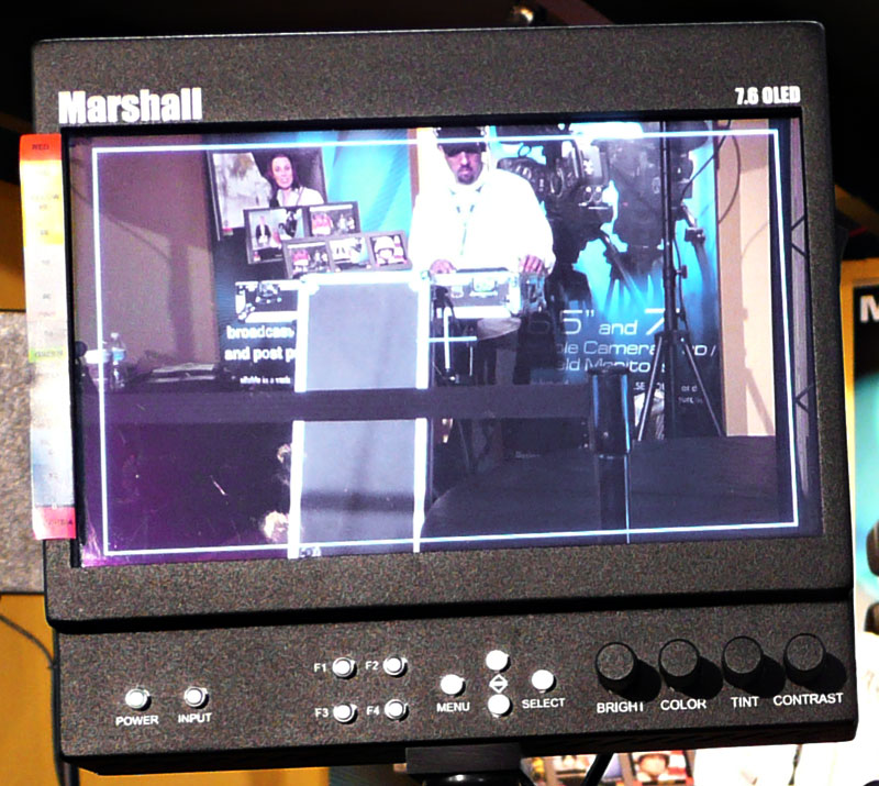 Marshall zeigt ebenfalls ein 7,6-Zoll-OLED-Display, das der Hersteller noch in diesem Jahr aauf den Markt bringen will. Es soll die kompakte Linie der Linie der Marshall-Displays auf LCD-Basis erweitern. Die Auflösung des Displays beträgt ebenfalls 800 x 480. Weitere Werte, die der Hersteller angibt, sind 200 cd/m² Helligkeit und ein Kontrastverhältnis von 10.000:1. Neben einem Bildbetrachtungswinkel von 170 Grad hebt Marshall die geringe Leistungsaufnahme hervor. Marshall will das Display in zwei Konfigurationen anbieten: 3GSDI (Composite, Komponente und 3G/HD/SDI) sowie HDMI (Composite, Komponente und HDMI).