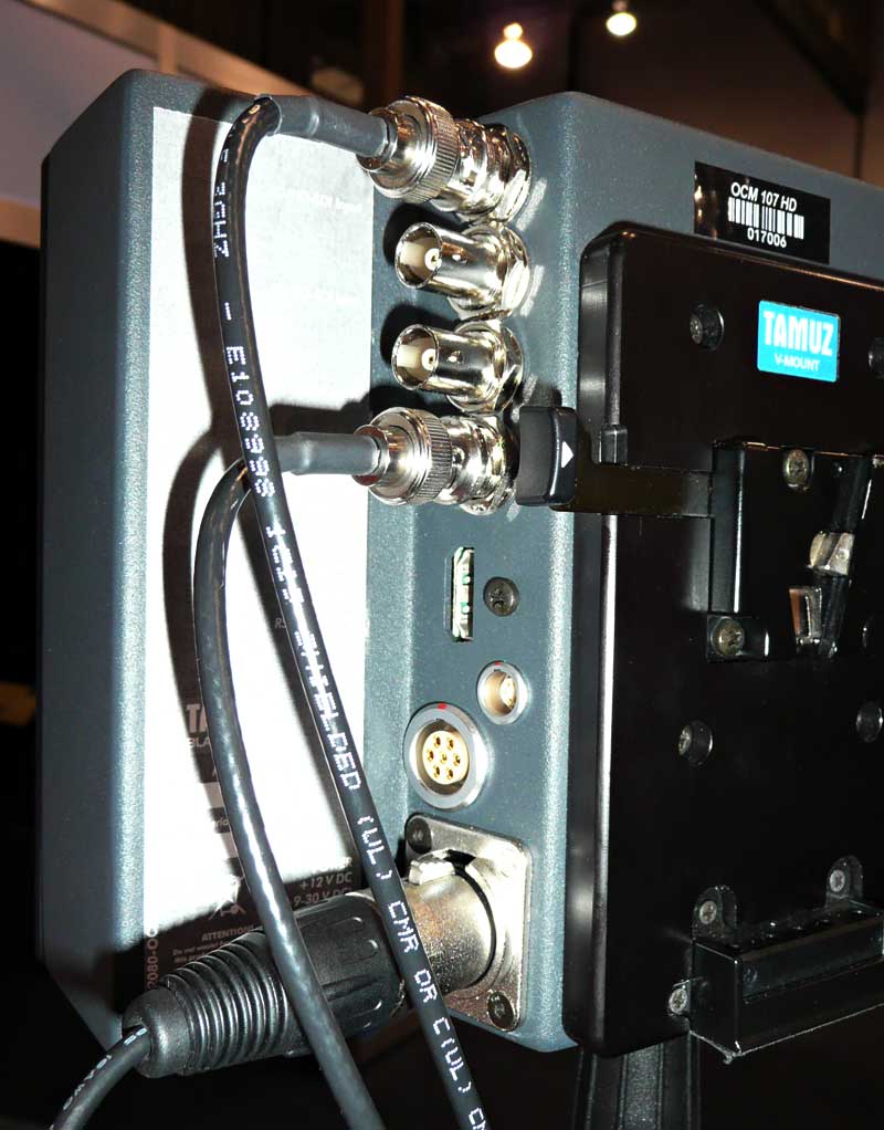 Tamuz stellt mit dem OCM 107W ein mobiles Display auf OLED-Basis vor. Es ist optimiert für die Montage auf Kameras, etwa bei Steadicam-Einsätzen. Das selbstleuchtende 7,6-Zoll-Display bietet eine Auflösung von 800 x 480 Bildpunkten es erricht eine sehr gute Bildhelligkeit und gute Schwärzen, das Gerät bietet ein robustes Metallgehäuse. Es kann im 16:9- ebenso wie im 4:3-Modus betrieben werden und bietet auch Over-/Underscan. Zahlreiche Funktionen sind direkt abrufbar, etwa Bildschirmdarstellungen für Farbe, Schwarz/Weiß, Blue-only oder Green-Screen-Modus. On-Air-Tally ist ebenso eingebaut wie ein GPI/O Port für Input und Tally. Auch bei den Anschlüssen hat Tamuz nicht gespart. I/Os für SD/HD-SDI sind ebenso vorhanden wie I/Os für Komponenten-, Composite und HDMI-Signale.