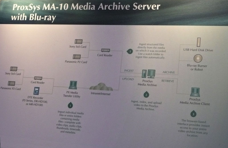 Focus hat mit ProxSys MA eine Archivierungslösung entwickelt, die sich speziell an Kunden richtet, die mit bandlosen Aufzeichnungssystemen arbeiten und dabei auf P2, SxS, Professional Disc oder mobile Diskrecorder aufzeichnen. ProxSys MA bietet automatischen Ingest von Videos, speichert Metadaten und archiviert das Material redundant. Um abgelegte Videos zu einem späteren Zeitpunkt leicht wiederfinden zu können, werden während des Importvorganges automatisch Flash-Vorschauen generiert, die zusammen mit nativen und individuellen Metadaten ständig auf dem ProxSys-System zur Verfügung stehen.
