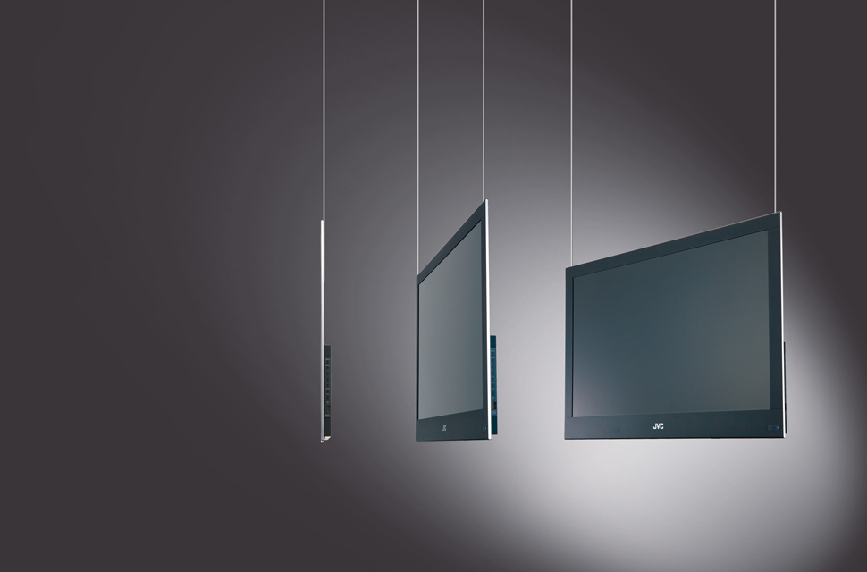 JVC sieht den Einsatzbereich des GD-32X1 in öffentlichen Gebäuden, Kaufhäusern und Läden, glaubt aber auch, dass er durch sein filigranes Design auch sehr gut für Galerien oder Museen geeignet ist.