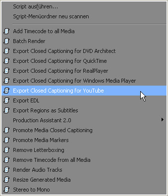 Die Möglichkeit Untertitel zu erstellen, ist eine weitere Neuerung. Sie erlaubt es, Untertitel auf der Timeline zu erstellen, die dann vom Endkunden eingeblendet werden können. Bislang hauptsächlich bei DVDs bekannt, können mit Vegas Pro 10 auch Untertitel für die verschiedenen Youtube-, Real Player-, Quicktime– und Windows-Media-Player-Formate erstellt und ausgegeben werden. Zwei verschiedene Untertitelspuren — etwa für zwei Sprachversionen — sind möglich. Die Untertitel können in der Videovorschau — getrennt nach Sprachen — angesehen werden.