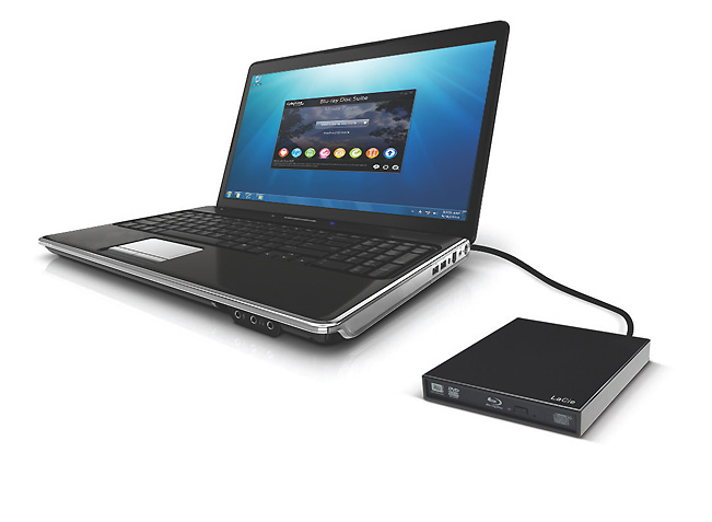 Mit einer 50-GB-Disc können bis zu vier Stunden HD-Video aufgezeichnet werden und es stehen bis zu acht Audio-Kanäle mit 32-Bit und 192 KHz zur Verfügung. Unter Windows lassen sich mit dem Blu-ray Slim-Laufwerk große Mengen an Musik, Filmen und Fotos in wenigen Minuten auf einer einzigen Disc archivieren. Zusätzlich zum Laufwerk wird das Softwarepaket Cyberlink Blu-ray Disc Suite mitgeliefert. Darin sind laut LaCie neun Programme zum einfachen Brennen und Bearbeiten von Videos und Fotos enthalten. Sie sollen helfen, einfache Backups zu erstellen.