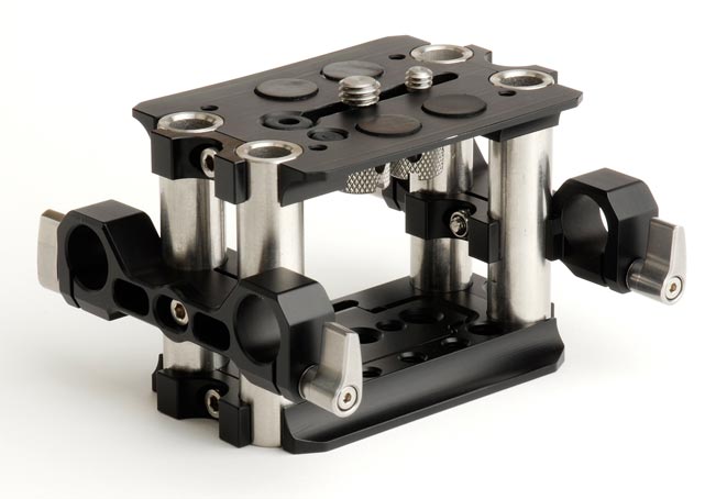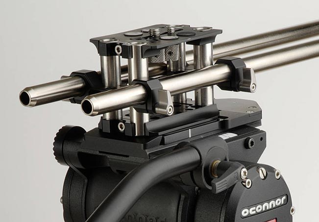 Der auf Stativköpfe und Kamerazubehör spezialisierte Hersteller OConnor entwickelte hierzu einen Aufbau, bei welchem eine untere Bodenplatte und eine obere Kameraplatte durch 4 vertikale 15mm-Stützrohre verbunden sind. An den vertikalen Rohren befinden sich wiederum die Halterungen für die horizontal angebrachten Stützrohre. Da die horizontalen Stützen durch zwei Halterungen arretiert werden, erhöht sich die Stabilität. Ein Wechsel zwischen 15mm- und 19mm-Stützrohren ist möglich. Somit kann zum Beispiel ein Follow-Focus oder, bei Verwendung eines schweren Objektives, eine Stützbrücke an den horizontalen Stützrohren angebracht werden. Durch die Befestigung an den vertikalen Rohren können die horizontalen Stützen zudem in ihrem Abstand zu Kamera und Objektiv angepasst werden.
