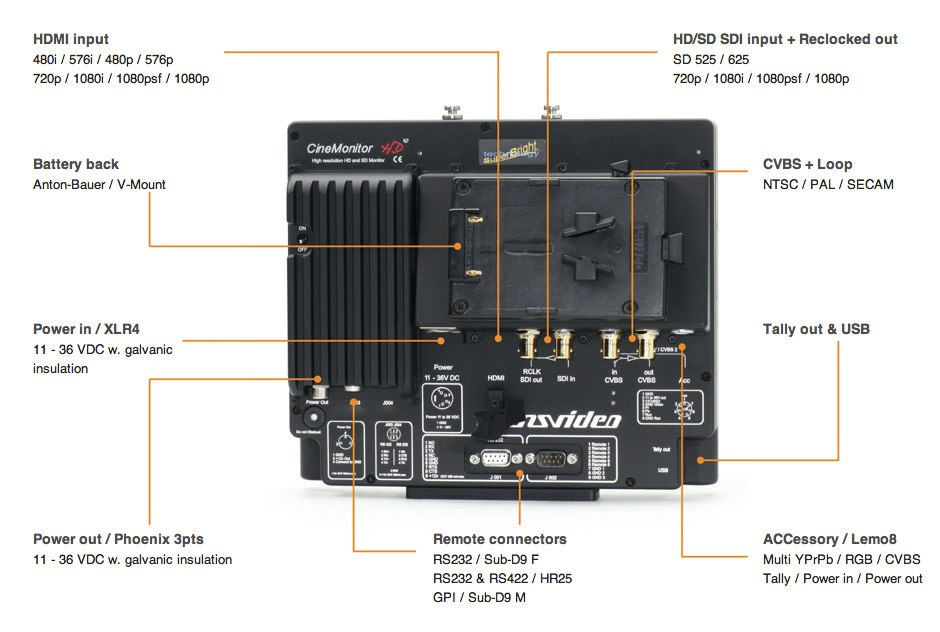 Der HD6 X-SBL kann sowohl SD- als auch alle gängigen HD-Videosignale bis zu einer Auflösung von 1080p verarbeiten. Anschlussseitig stehen hierzu beispielsweise Inputs für SD-/HD-SDI, HDMI, CVBS oder YPrPb zur Verfügung. Für die Wiedergabe des Videobildes stehen 1.024 x 576 Pixel zur Verfügung – in diesem Bildbereich können SD- und HD-Videosignale dargestellt werden.