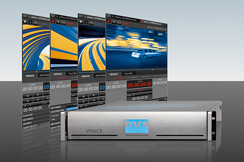 Venice, der Ingest- and Production-Server für die Broadcast-Studioumgebung, bietet neue Möglichkeiten im Bereich Avid Outgest sowie Studio Playout: Mit einer nahtlosen Avid Isis/Interplay PAM-Integration von Ingest bis Outgest können dank Venice komplette Avid-Studio-Workflows realisiert werden. Content kann in der Avid-Umgegbung ohne Zeitverlust eingespielt und nach erfolgtem Schnitt direkt wieder ausgespielt oder distribuiert werden. Der Hersteller hebt weiter den Multi-Kamera-Ingest in Venice hervor, der echtes Dual-Destination-Recording erlaubt, was vor allem in Live-Situationen die Sicherheit entscheidend erhöht.