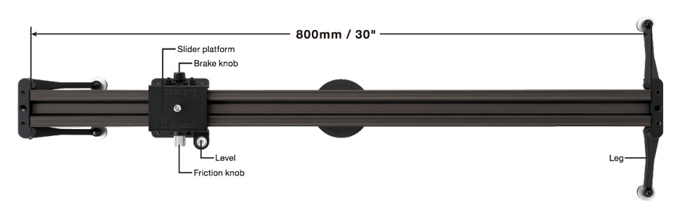 Der Allex S hat eine Länge von 83 cm, eine darauf montierte Kamera kann über eine Strecke von etwas mehr als 70 cm bewegt werden. Dank eines 8-fach Kugellagers und einer Friktionskontrolle sollen sich laut Libec mit dem Slider sehr weiche Fahrten realisieren lassen. Außerdem verfügt der Schlitten, auf dem die Kamera montiert wird, über eine Bremse. So kann die Kamera dann auch bei einer vertikalen Fahrt jederzeit in ihrer Position arretiert werden.