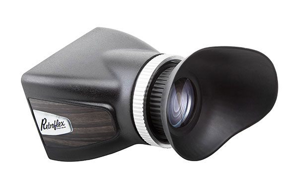 An der Rückseite des Cage kann dann die ebenfalls mit dem Retroflex Rig gelieferte, optische Sucherlupe angebracht werden. Die Befestigung geschieht über einen Magnetrahmen, durch den auch der Eintritt von Licht an der Übergangsstelle zwischen Cage und Sucher verhindert werden soll. Aufgrund der magnetischen Verbindung ist der Sucher zudem in Sekunden montiert. Der Retroflex Sucher bietet eine 3-fache Vergrößerung des Displays und besitzt einen verstellbaren Diopter, um die Sucherschärfe an das Auge des Users anpassen zu können. Vorteilhaft ist auch eine große Suchermuschel, um den Einfall von Umgebungslicht zu minimieren.