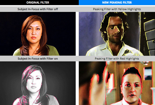 An Hilfsfunktionen für das Scharfstellen bietet der V-LCD71MD z. B. einen neuen Peaking-Filter, der das Peaking nun auch einem farbigen Bild überlagern kann. Außerdem stehen verschiedene Peaking-Farben zur Auswahl und die Intensität des Peakings kann angepasst werden. Eine integrierte Pixel-to-Pixel Darstellung kann ebenfalls beim Finden der Schärfe helfen.