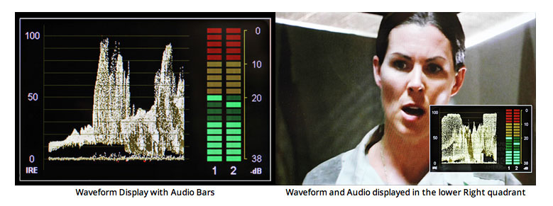 Um die Belichtung zu kontrollieren, steht eine anpassbare Zebra-Funktion und False Color bereit. Auch über eine Waveform-Darstellung, die sich als Overlay in einer beliebigen Bildschirmecke platzieren lässt, kann die Helligkeitsverteilung beurteilt werden. Ebenfalls als Overlay angezeigt wird ein Audiometer, das den Pegel der Audiosignale überwacht, die als Embedded Audio per HDMI oder HD-SDI an den Monitor übertragen werden. Zum Abhören des Embedded Audio besitzt der V-LCD71MD eine Kopfhörerbuchse an der Vorderseite.