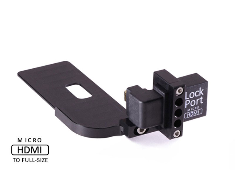 Um dies zu vermeiden, nutzt das LockPort-System einen um 90 Grad gewinkelten Buchsendadpter, der von der Micro- bzw. Mini-HDMI-Buchse der Kamera auf einen Full-Size-HDMI-Anschluss adaptiert. An diesem »normalen« HDMI-Anschluss können dann stabile Standard-HDMI-Kabel genutzt werden, die zudem ein sicheres Einrasten des Kabels in der Buchse gewährleisten. Um wiederum den HDMI-Adapter stabil mit der Kamera zu verbinden, sind verschiedene Baseplates verfügbar, die an die Unterseite der Kamera montiert werden.