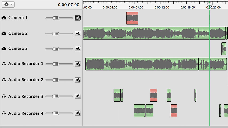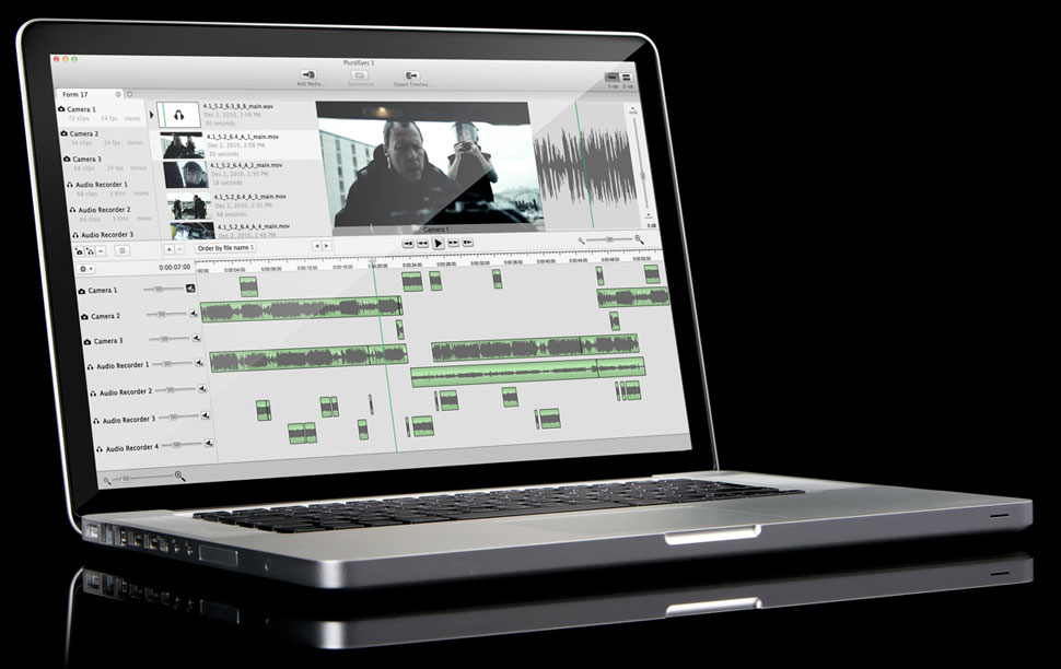 Ein weiterer Bestandteil der Shooter Suite ist Plural Eyes. Mit dieser Software lässt sich das Footage aus Mehrkamera-Aufnahmen per Tonspur automatisch synchronisieren. Das manuelle Anlegen einer Multikamera-Sequenz mittels Klappe wird damit überflüssig. Ebenso kann auf die Synchronisierung der einzelnen Kameras per Timecode verzichtet werden. Möchte man Plural Eyes zur Synchronisation verwenden, mass man als Anwender also lediglich darauf achten, dass jede an der Aufnahme beteiligte Kamera den Ton mit aufzeichnet. Dann kann Plural Eyes die Synchronisierung automatisiert erledigen.