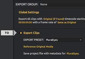 Nach der automatischen Synchronsierung erlaubt Plural Eyes den Export einer Timeline-Sequenz, die sich in den verbreiteten Editing-Systemen weiterverarbeiten lässt. Beispielsweise sind die exportierten und synchronisierten Timelines kompatibel mit Adobe Premiere ab Version CS5, FCP7, FCP X, Avid Media Composer ab Version 5.5 sowie Sony Vegas Pro ab Version 10.