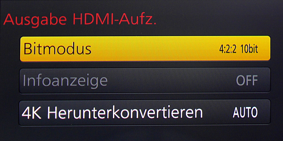 Um von der 10-Bit-Fähigkeit des Ninja Star profitieren zu können, muss die GH4 auf 10-Bit-Ausgabe eingestellt werden. Dann ist zwar keine interne Aufnahme mehr möglich, Peaking und Zebra können bei der GH4 aber ganz normal verwendet werden.