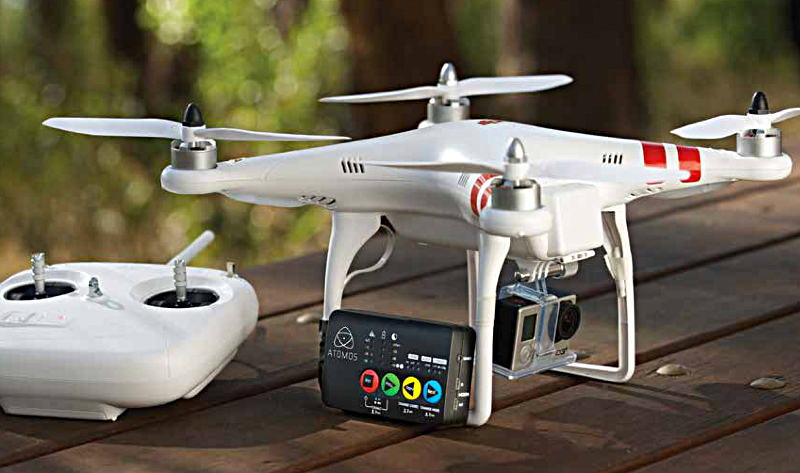 Insgesamt ist der Ninja Star zwar schon ein wirklich leichte, kleine Box und Atomos macht explizit Werbung an einer Phantom-2-Flugdrohne, bestückt mit einer GoPro Hero 3+.