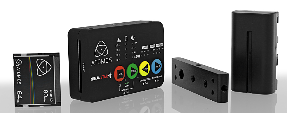 Atomos bietet auch passende Speicherkarten und eine Dockstation für den Anschluss der CFast-Karte an einen PC separat an. Eine 64-GB-CFast-Speicherkarte kostet bei Atomos derzeit rund 113 Euro (Nettopreis). Separat erhältlich sind auch Akkuadapter, die es ermöglichen, den Ninja Star mit anderen Camcorder-Akkus als dem mitgelieferten sony-kompatiblen NP-F-Akku zu betreiben.