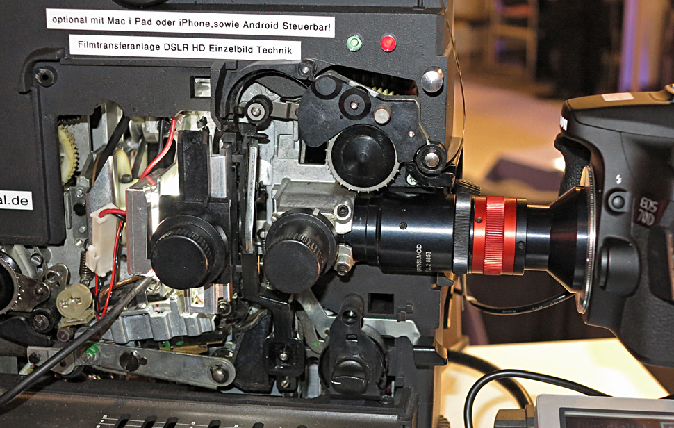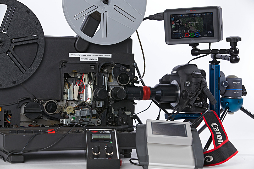 Das niedersächsische Unternehmen Film-Digital hat sich auf das Thema Filmtransfer spezialisiert — aber mit einem ganz besonderen Twist: Das Unternehmen schlägt die Brücke zwischen 8- und 16-mm-Film auf der einen und der digitalen Welt auf der anderen Seite, mit umgebauten Filmprojektoren, Spezialoptiken und handelsüblichen Digitalkameras.