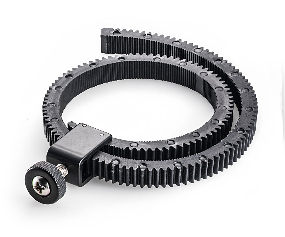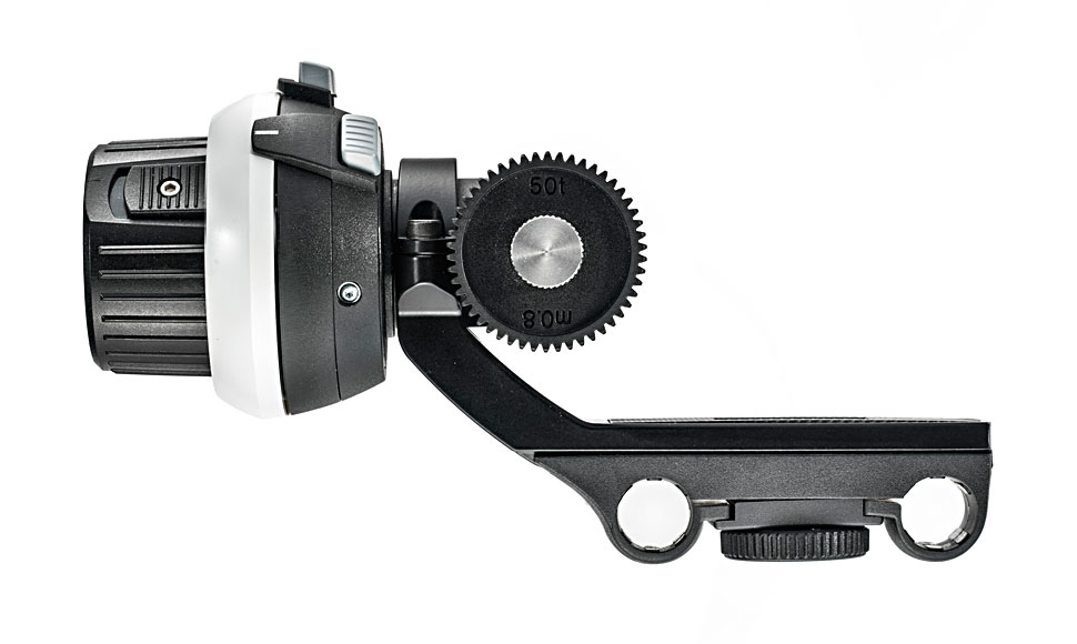 Der Follow Focus wird mit einem Zahnkranz mit 50 Zähnen/Modul 0,8 und Zahnriemen sowie einem 35-mm-Reibrad geliefert. Als Zubehör gibt es ein großes Handrad, das über einen Standard-Innenvierkant verfügt: zum Anschluss einer flexiblen Welle zur komfortablen Bedienung des Follow Focus aus größerem Abstand.