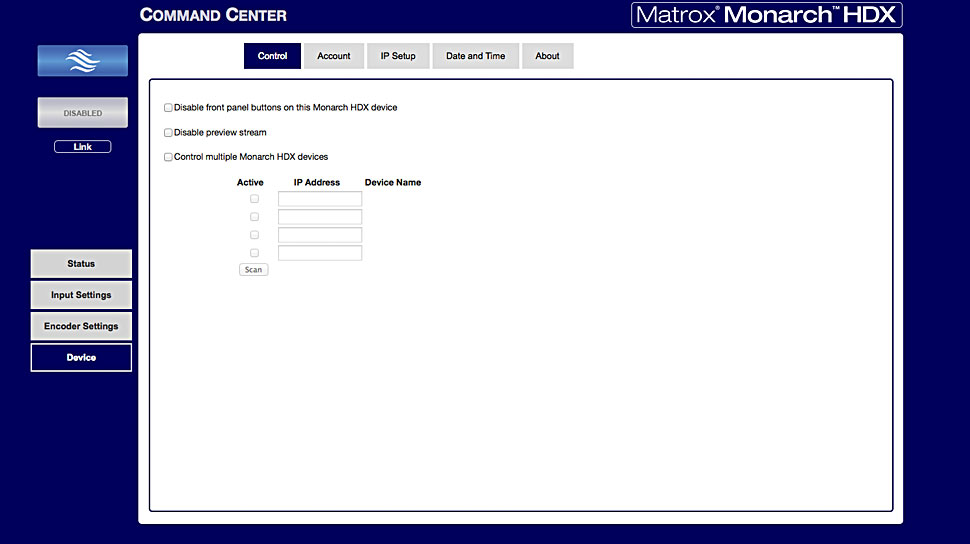 Konfiguriert wird die Monarch-Box vom Computer oder einem mobilen Gerät aus per Web-Browser. Außerdem lässt sich Monarch HDX auch in größere Infrastrukturen integrieren und dann von Ross- oder Crestron-Systemen aus steuern und automatisieren.