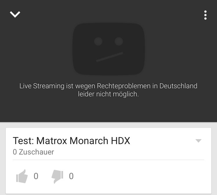Das Youtube Live-Streaming hat aktuell in Deutschland allerdings den Haken, dass es nur eingeschränkt nutzbar ist: Man kann zwar auf die Youtube-Plattform bzw. auf den eigenen Kanal streamen, doch Zuschauer können das Material nur zeitversetzt als gespeicherten Stream auf Youtube ansehen. Wer auf den Livestream klickt, um ihn aufzurufen, erhält während des Live-Streamings die Meldung, dass der Stream in Deutschland nicht verfügbar sei.