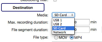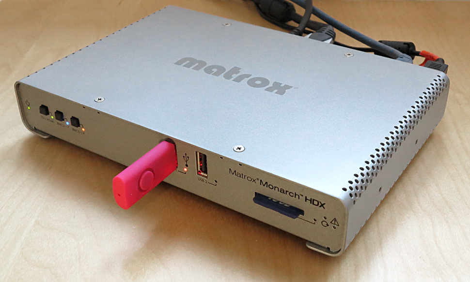 Monarch HDX kann Material auch aufzeichnen, und zwar als MP4- oder MOV-Datei. Die Files lassen sich auf lokale USB-Laufwerke, SD-Karten oder Netzlaufwerke speichern. Die Aufzeichnung auf USB-Devices erfolgt grundsätzlich mit USB-2.0-Geschwindigkeit, und teilweise dauert es auch einen Moment, bis Monarch das jeweilige USB-Device erkennt. Beim SD-Kartenslot benötigt Monarch HDX idealerweise SD- oder SDHC-Karten, mindestens Class10.