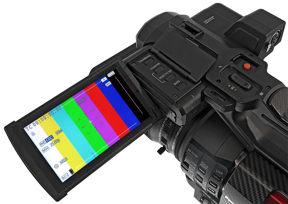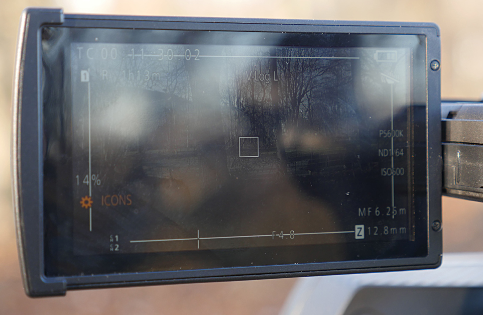 Das Gewicht ist für einen Camcorder dieser Klasse vielleicht einen Tick zu hoch, durch das Semi-Schulter-Design und die Position des Displays lässt sich der Camcorder auch für längere Takes aus der Hand einsetzen. Die Bauform ist wesentlich praktischer und ergonomischer als etwa beim entfernten Verwandten AG-AF101 — und sie würde sich auch für eine Variante mit Wechseloptik eignen. Insgesamt ist die Ergonomie und Benutzerführung sehr gut und praktisch. Der LCD-Schirm ist nicht gerade überragend, aber gut genug, um die Schärfe mit Hilfe des einstellbaren Peakings in den meisten Drehsituationen beurteilen zu können. Die zwei größten Nachteile sind einerseits die 8-Bit-Quantisierung und die 4:2:0-Abtastung bei interner Aufzeichnung und andererseits die mittelmäßige Lichtempfindlichkeit.