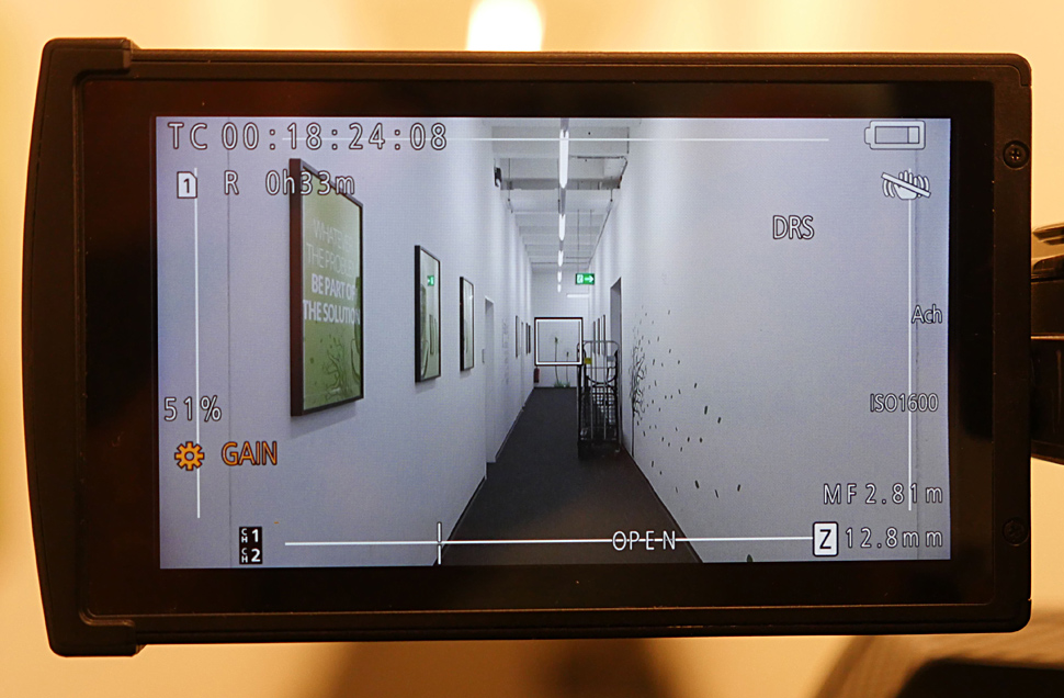 Die Kombination aus Sensor und Objektiv begrenzt die Lichtempfindlichkeit so weit, dass es schon bei normaler Bürobeleuchtung kaum möglich ist, ohne zusätzliches Licht zu drehen — oder eben erhöhtes Bildrauschen in Kauf zu nehmen. Das Objektiv bietet eine gute Bildschärfe mit erstaunlich wenig Verzeichnung im Weitwinkelbereich. Leider bleibt in 4K ein Teil des Weitwinkelwirkung auf der Strecke. Verbunden mit der Möglichkeit, Zeitlupenaufnahmen mit bis zu 120 fps aufzunehmen, ist der DVX200 ein guter Reportage-Camcorder mit der Möglichkeit zum Filmlook, am besten nutzbar bei Außendrehs oder ausgeleuchteten Interviews.