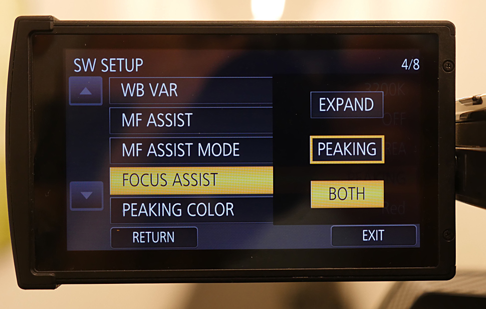 Neben der Farbe lässt sich beim Peaking auch die Empfindlichkeit in 7 und die Stärke in 15 Stufen einstellen. Damit ist das Peaking flexibel genug, um für fast alle Situationen gerüstet zu sein auch wenn der Bildkontrast mal etwas geringer ist. Allerdings muss man für die Einstellung ins Menü einsteigen.