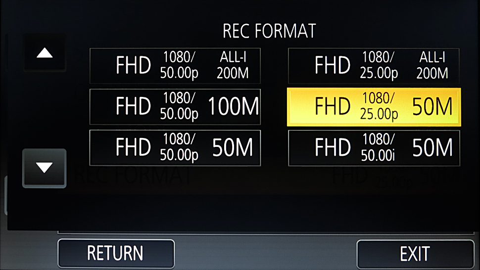 Aufgenommen werden Quicktime-Dateien (oder MP4/AVCHD) im H.264–Codec, in 8 Bit und 4:2:0. Das einzige All-Intra-Format in Full-HD hat mit 200 Mbps die höchste Datenrate. UHD mit 50 Bildern pro Sekunde gibt es mit 150 Mbps.
