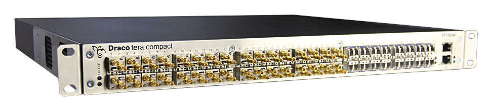 Für die erfolgreiche KVM-Matrixswitch-Serie Draco Tera Compact, die mit bis zu 80 individuell konfigurierbaren E/A-Ports ausgestattet ist, bietet Ihse Hybridmodelle mit bis zu 32 Universalports zur Schaltung von USB 3.0 und 3G-SDI zusammen mit den gängigen KVM-Signalen wie HDMI, DVI, DisplayPort bis zu 4K, USB 2.0, Audio und serielle Schnittstellen innerhalb einer Matrix.