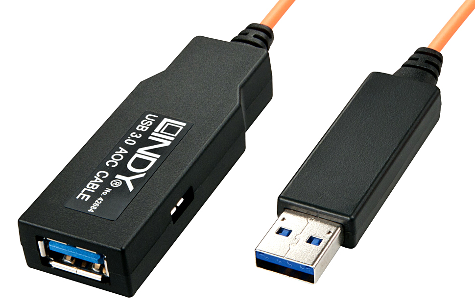 Der Preis für optische USB 3.0 Kabel von Lindy in den Längen 30, 50, 70 und 100 m (Artikelnummern 42683, 42684, 42685 und 42696) liegt zwischen 329 und 499 Euro.