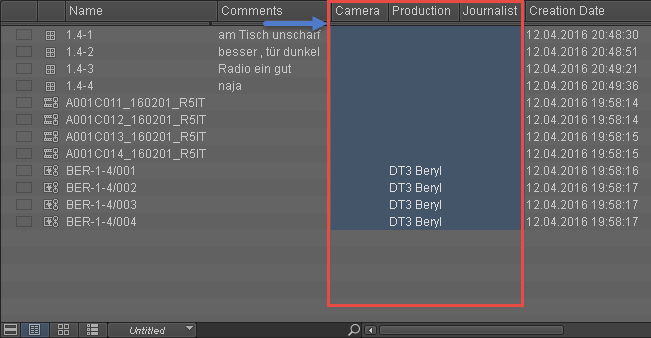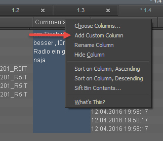 Da es oft vorkommt, dass mehrere Elemente eines Bins in einer Spalte den gleichen Wert haben, ist es ab jetzt möglich, diese Elemente zu markieren und einen Wert einzugeben, der dann für alle gilt. Der Weg ist allerdings etwas kompliziert: Man kennzeichnet alle Elemente im Bin, die in einer der Spalten einen gleichen Wert erhalten sollen, klickt danach rechts in die entsprechende Spalte, aber nicht in deren Kopf, um dort »Set <Column name> for selected clips…« auszuwählen und gibt dann den gewünschten Wert ein, der nach einer Sicherheitsabfrage eingetragen wird. Trotz des leicht komplizierten Weges sehr sinnvoll, um Material besser sortieren/verwalten zu können.