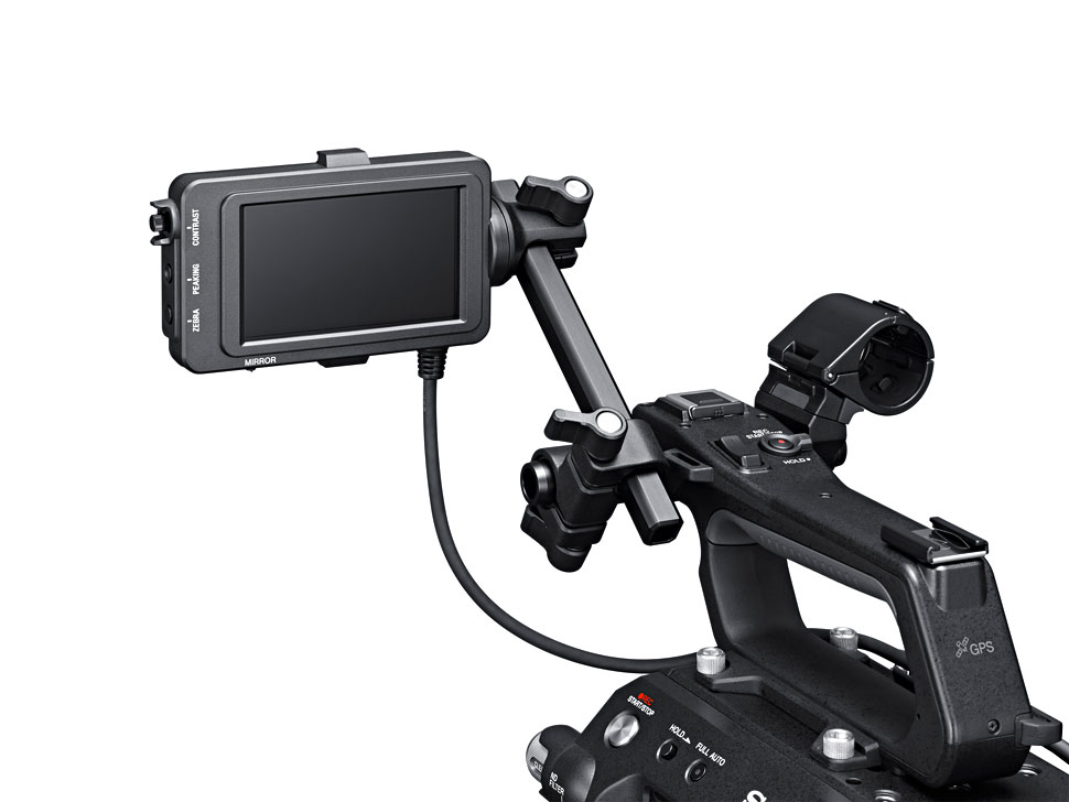 Der Suchermonitor, für den auch eine neue Sonnenblende verfügbar ist, kann auch mit einer Sucherlupe genutzt werden. Diese lässt sich beim FS7 II einfach mit einer Hand montieren, abnehmen oder bei Bedarf auch aufklappen. Sony hebt weiter hervor, dass die Haltestangen für den Sucher beim FS7 II nicht rund, sondern quadratisch mit abgerundeten Kanten ausgeführt sind: Das bringt Verdrehsicherheit, kann unerwünschtes Verstellen verhindern und bringt mehr Stabilität. Zudem seien die Haltestangen und -Schrauben besonders robust ausgeführt, sodass sich der Sucher flexibel aber fest und sicher in unterschiedlichsten Positionen arretieren lässt.