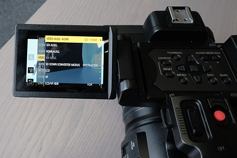 Dank HLG unterstützt der AG-AC350 HDR. Bei den Scene Files stehen acht Modi zur Auswahl (HD, SD, Filmlike 1,Filmlike 2,Filmlike 3, Film-Rec, Video-Rec, HLG).