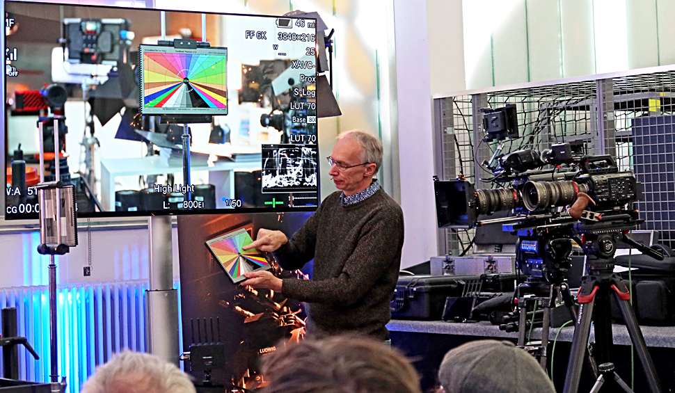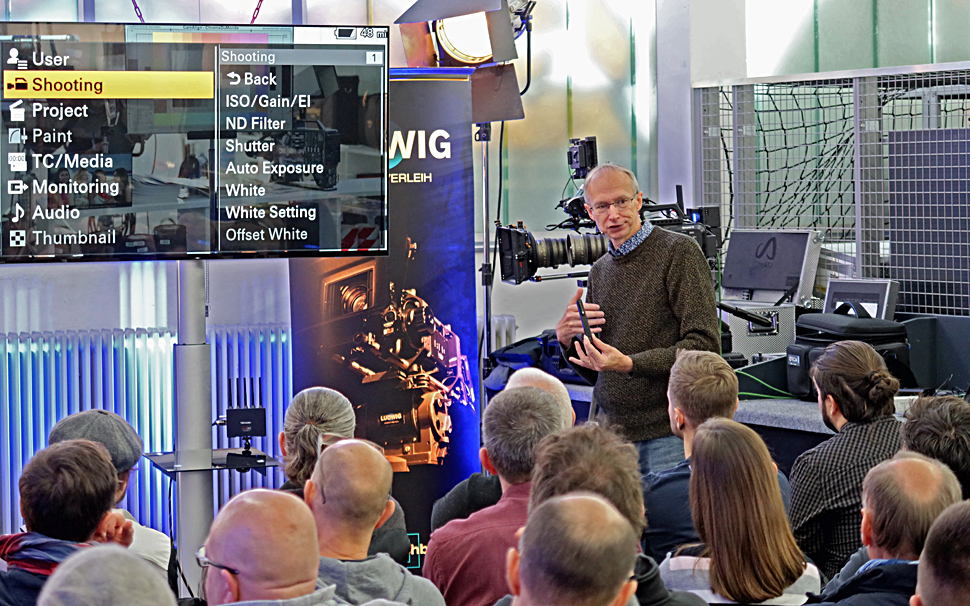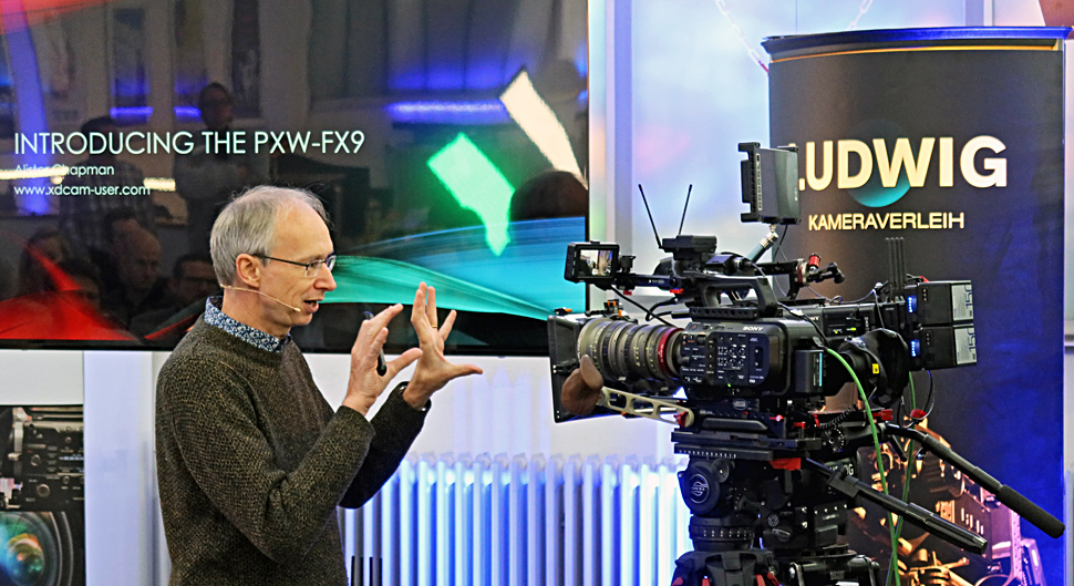 Die Unterschiede und Gemeinsamkeiten von Venice, FX9 und FS7 herauszuarbeiten, war der Rahmen der Veranstaltung, aber Chapman gab aufgrund seiner umfangreichen Praxiserfahrung auch viele Tipps, Infos und Hinweise zu allgemeineren Themen wie Workflows, Color-Management, XOCN und vielem anderen.