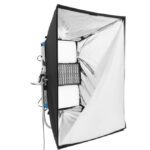 Die silberbeschichteten Innenflächen verstärken die Lichtausbeute. Die 50 mal 50 cm große Leuchtfläche der Softbox von DoPchoice ist kompatibel mit dem Blendenvorsatz SGQ50W40.