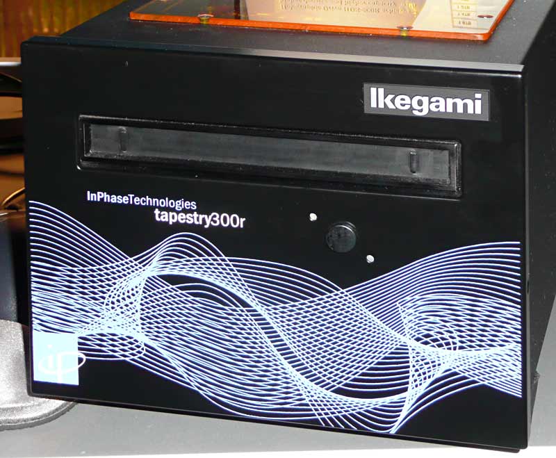 Das von Inphase und Maxell entwickelte Tapestry-System, das ein holografisches Aufzeichnungsverfahren nutzt (siehe Meldung hierzu), wird im Broadcast-Bereich von Ikegami unter der Bezeichnug HDS-300R angeboten — auch in Europa. 160 Mbps Datentransferrate im Lese- und Schreibbetrieb gibt der Hersteller für das System an, das momentan 300 GB pro Disc speichern kann. Kunden, die mehr als ein einzelnes Laufwerk brauchen und Tapestry als zentrales Speichersystem für Archivzwecke nutzen wollen, können eine Jukebox-Lösung des deutschen Anbieters DSM einsetzen, ein vollautomatisches System, das die Robotik von DSM mit einem Tapestry-Laufwerk verbindet. Das Laufwerk will Ikegami zum Nettopreis von rund 18.000 US-Dollar anbieten, das Speichermedium kostet rund 180 US-Dollar.