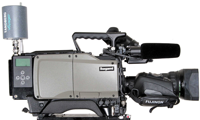 Auch mit dem Thema Drahtlos-Übertragung von Kamerasignalen befasst sich Ikegami: Einen vollständig integrierten Drahtlos-Adapter, der die Einbindung in normale Studioinfrastrukturen und die Steuerung der Kamera erlaubt, gibt es für SD-Signale. Im HD-Bereich steht hier bislang nur eine externe Anflansch-Lösung zur Verfügung, aber Ikegami strebt an, auch hier bald eine integrierte Lösung bieten zu können.
