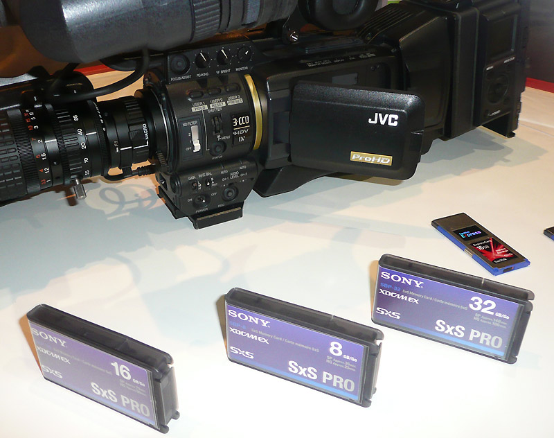 JVC hat sich mit Sony geeinigt, künftig eigene Produkte auf der Basis von SxS-Speicherkarten zu bauen und auch SxS-Speicherkarten unter eigener Marke anzubieten. Dabei setzt JVC aber weiterhin auf den 720/50p-Standard und wird Produkte im Format XDCAM EX in diesem Raster anbieten.