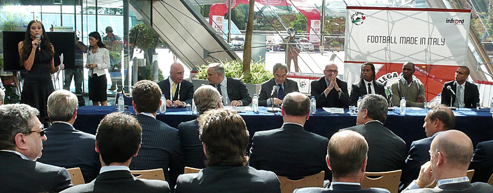 Lega Calcio »Football made in Italy«: Die beiden höchsten Fußball-Ligen in Italien haben noch die internationalen Ausstrahlungsrechte an den Spielzeiten 2010/2011und 2011/12 zu vergeben. Um den Start der Ausschreibung etwas glamouröser zu gestalten, setzten der italienische Fußballverband Lega Calcio (vergleichbar mit der DFL) und der Rechtehändler Infront Sports & Media auf die Strahlkraft der Kickstars Ronaldhino vom AC Mailand, Patrick Viera von Inter Mailand und David Trezeget von Juventus Turin, die hierfür nach Monaco eingeflogen wurden.