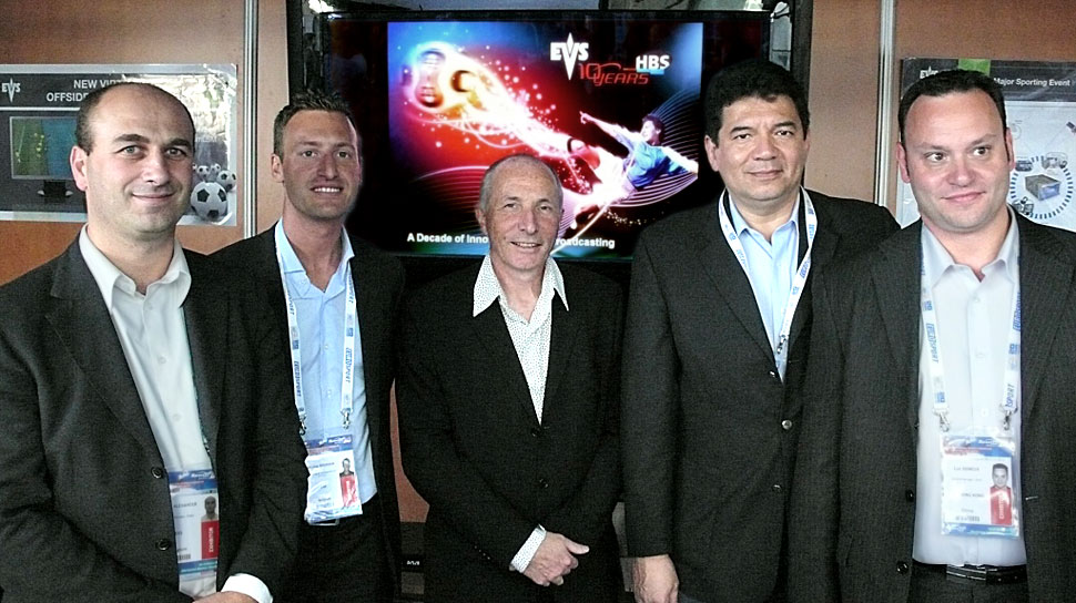 EVS feierte im Rahmen der Sportel sein 15-jähriges Firmenjubiläum und die 10-jährige Zusammenarbeit mit HBS bei den Fußball-WMs. Nicolas Bourdon präsentierte die jüngsten technischen Innovationen von EVS, wie das Web-Browsing und -Control-System XT2web, die Live-Grafik-Funktionalität für das Einblenden von Abseitslinien und das neue Steuerpult für UltraMotion-Kameras wie die Arri Medias HiMotion (bis 600 fps in HD) oder die SuperLoupe von DVS (bis 1.000 fps in HD).