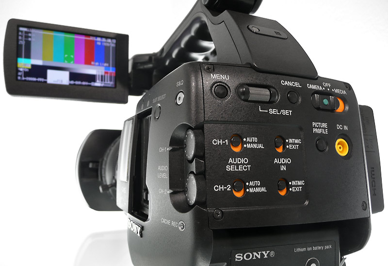 Auch bei der Ausführung des Camcorders und der Platzierung von Tasten am Camcorder hat Sony genau hingehört und etliche Kundenwünsche erfüllt: so ist der Ein- und Ausschalter des Camcorders nun deutlich besser ausgeführt, Außerdem wurden die Tasten auf der Rückseite des Camcorders farbig hinterlegt, sodass etwa im Audiobereich auf einen Blick ersichtlich ist, was man gerade eingestellt hat.