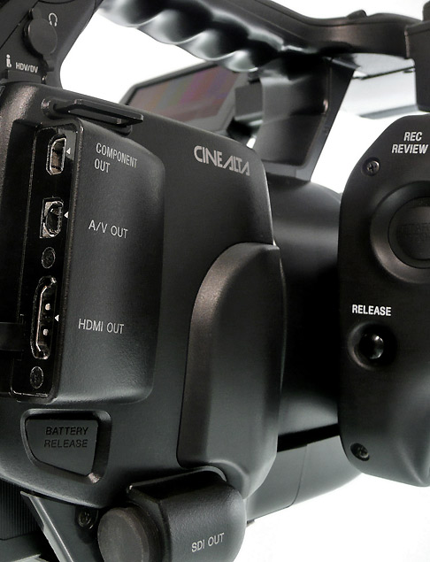 Weitere Defizite, die der EX1 im Vergleich zu anderen Camcordern aufwies und die nun ausgeglichen wurden: Der EX1R ist mit einen zweiten Zubehörschuh ausgerüstet, sodass man beispielsweise eine digitale Funkstrecke zusätzlich zu einer Kopfleuchte ohne Probleme am Camcorder befestigen kann. Jetzt gibt es auch eine Auto-Iris-Taste, mit der sich die Blende am Objektiv kurzzeitig automatisch einstellen lässt. Ein neu gestalteter Boden soll die bessere Befestigung des Camcorders auf einem Stativ ermöglichen und auch die Zoomstopp-Kurve soll nun besser und weicher einstellbar sein. Man merkt, dass Sony beim Re-Design des EX1 tatsächlich ein offenes Ohr für Rückmeldungen und Anregungen der Anwender zeigte. So wurde etwa auch der Audio-Limiter verbessert und ein HDMI-Ausgang ergänzt, über den der Camcorder ein unkomprimiertes Signal ausgibt — bessere Bildqualität also, als er selbst ausfzeichnen kann. Das Ganze soll parallel zu HD-SDI funktionieren, so dass hier alle Optionen offenstehen, externen Speicher und Zusatzmonitore beim Dreh zu nutzen.