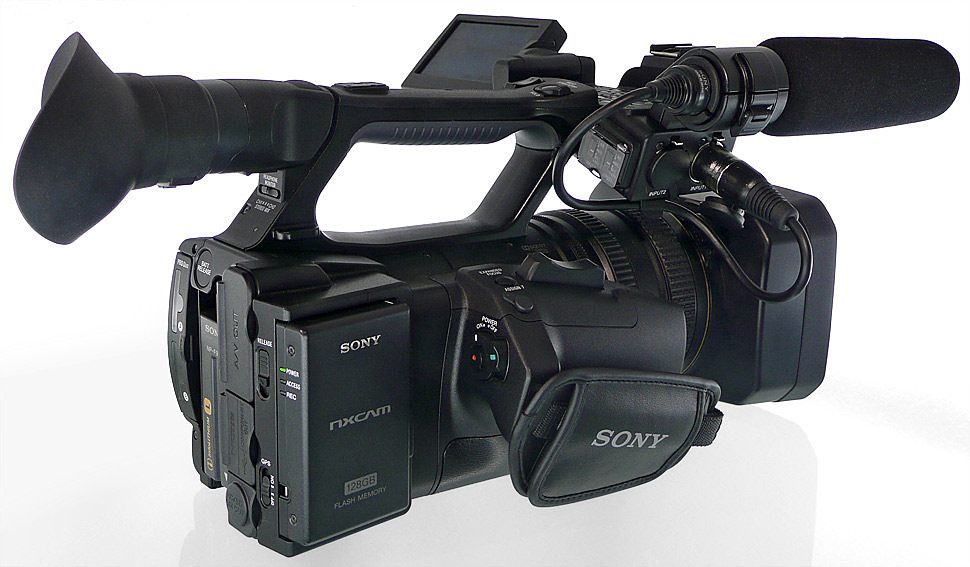 Beim ersten Camcorder der NXCAM-Reihe setzt Sony also in weiten Teilen auf bewährte Technik. Vereinfacht gesagt, hat Sony beim ersten, vorsert noch namenlosen NXCAM-Camcorder den HDV-Camcorder Z5 vom HDV-Laufwerk befreit und mit AVCHD verheiratet. Herausgekommen ist dabei ein Speicherkarten-Camcorder, der zwar ganz ähnlich aussieht wie ein Z5, der aber wahlweise auf zwei Memory Sticks oder auf eine optional erhältliches, andockbare Flash-Memory-Einheit aufzeichnet. Letzterer weist eine Speicherkapazität von 128 GB aus, was in der höchsten Qualitätsstufe des Geräts (AVCHD mit 24 Mbps) elf Stunden Aufzeichnung erlauben soll.