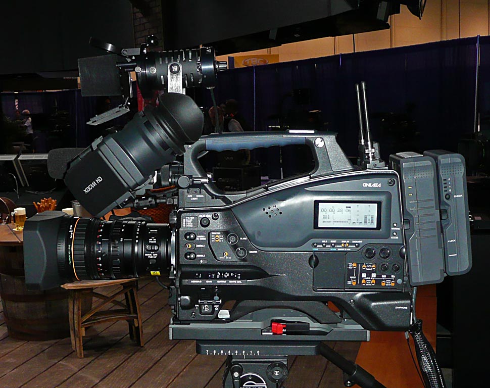 Der ultrakompakte AVCHD-Camcorder HXR50 von Sony hat keine XLR-Buchsen und gehört deshalb nicht zur NXCAM-Familie. Dennoch soll er die Palette der Handheld-Camcorder von Sony nach unten abrunden. Auch die XDCAM EX-Familie bekommt Zuwachs: der PMW-320 gleicht äußerlich dem PMW-350 (weitere Infos, er ist aber mit Halbzoll-Sensoren bestückt. Mit neuem Zubehör können diese Schulter-Camcorder und auch der PMW-EX3 (mehr Infos) für den Studioeinsatz aufgerüstet werden. Ein OLED-Fieldmonitor erlaubt die Bildkontrolle mit einem hochwertigen, hellen, selbstleuchtenden Display. Einige weitere Informationen zum Designmodell des zukünftigen Einstiegscamcorders für den Bereich Digital Cinematography, gab Sony ebenfalls bekannt: Einen offiziellen Namen hat das Gerät noch nicht und es soll auf SxS-Karten aufzeichnen.